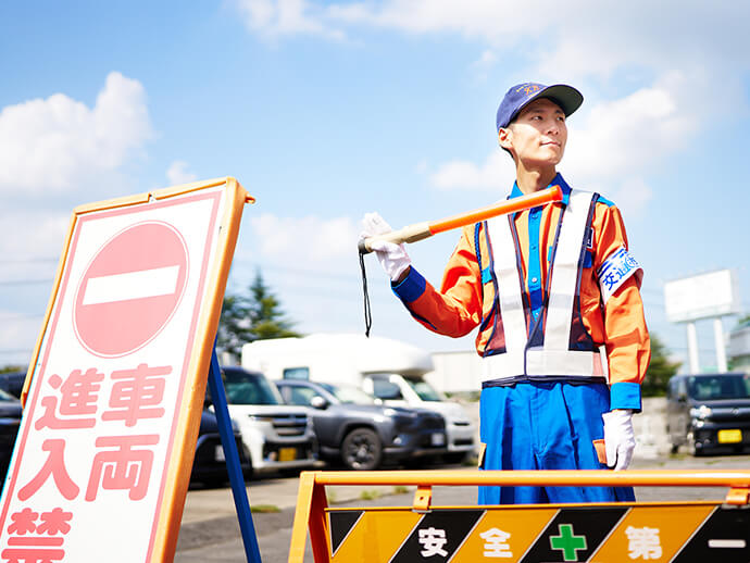 入社後は20時間の法定研修を受講し、警備業法や警備員としての基本姿勢を学びます。その後は先輩スタッフがOJTで丁寧にサポートしながら現場での業務を実践。立ち位置や声かけ、安全確認の方法などを体験し、仕事への理解を深めていきます。2ヶ月を目安に独り立ちを目指せるよう、一人ひとりに合わせたフォロー体制を整えています。経験・未経験を問わず安心して始められる仕組みがある点が特長です。
